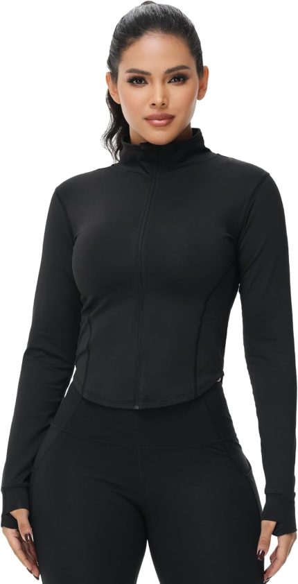 Dalavch 3 Pack Womens Cropped Full Zip up Workout Jacket Slim Fit Running Athletic Gym Yoga Sports Jacket with Thumb Holes