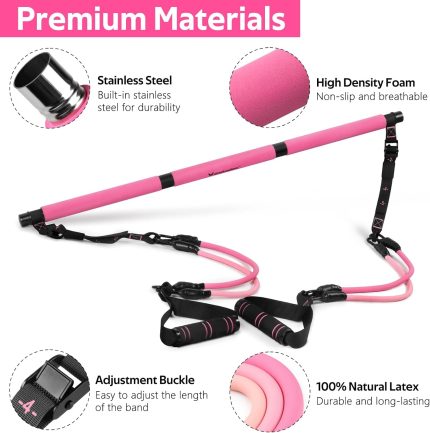Pilates Bar Kit with Resistance Bands, Multifunctional Pilates Bar for Women & Men with Heavy-Duty Metal Adjustment Buckle, Pilates Home Equipment for Full BodyWorkouts