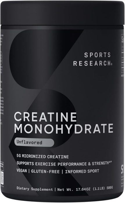 Sports Research Creatine Monohydrate – Gain Lean Muscle, Improve Performance and Strength and Support Workout Recovery* – 5 g Micronized Creatine – 17.64 oz