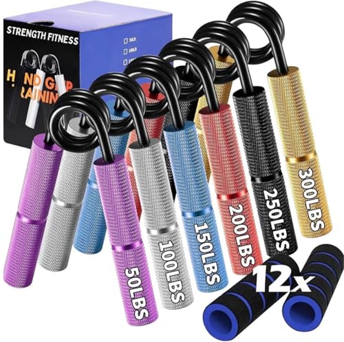 FLYFE Grip Strength Trainer, Hand Grip Strengthener, Forearm Strengthening Devices Metal Hand Exercisers Non-Slip Wrist Workout Trainer for Men Women Training Recovery, 1/4/6 Pack, 50LB-350LB