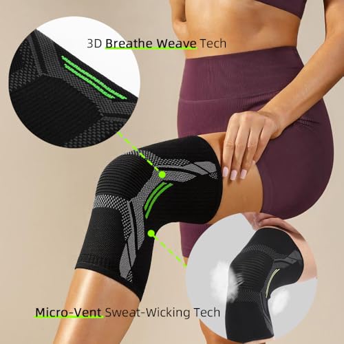 COMFORTABLE & BREATHABLE: The compression knee sleeves are made of comfortable and breathable fabric and feature unique 3D breathable weaving technology and microporous sweat-wicking technology to ensure all-day comfort. The top of the pad is equipped with a silicone anti-slip strip, which can be comfortably worn inside pants and can be worn on either knee without slipping, greatly enhancing your wearing experience.
