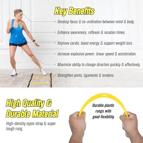 Our Multipurpose Agility Ladder Speed Training Equipment can be Used for Athletic Training, Football, Soccer, Basketball Drills, Hockey, Lacrosse, Tennis, and Badminton