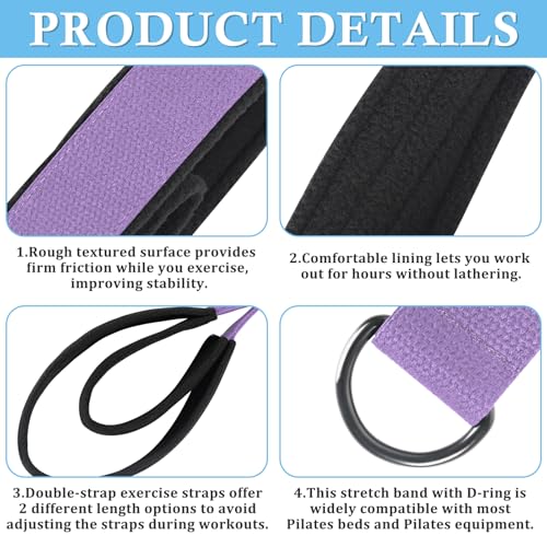 Widely Compatible: Equipped with D-ring loops, these stretching straps are compatible with most Pilates beds and equipment. Whether you're using a Pilates bed or other apparatus, these versatile straps seamlessly integrate into your workout routine. Additionally, they are lightweight and portable, allowing you to take them with you wherever you go.