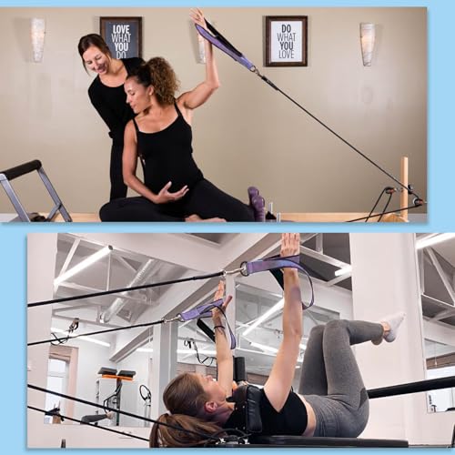 2-In-1 Loop Design: Featuring a double band exercise strap, this innovative design provides two different length options. Say goodbye to constant band adjustments during workouts and easily transition between leg and arm exercises on your Pilates reformer. Short loops for hands and long loops for legs.