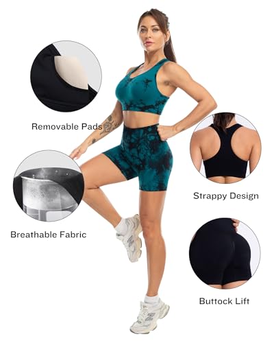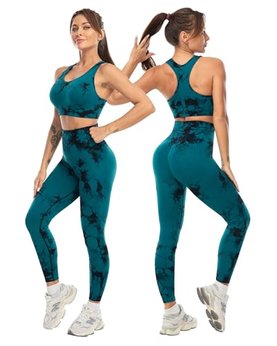Workout Sets for Women 2 Piece High Waisted Seamless Leggings with Padded Stretchy Sports Bra Sets Gym Clothes