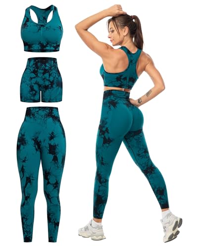 3 Piece Workout Sets for Women Butt Lifting Leggings with High Impact Sports Bra Gym Shorts