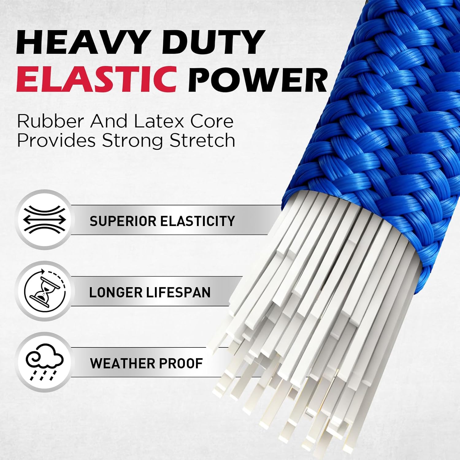 SUPER ELASTIC – Reinforced latex core delivers long shock cords performance with superior resilience, stretching smoothly for reliable load support, ideal for securing ropes, outdoor gear, camping setups, garden tools, and multi-purpose tie down straps applications