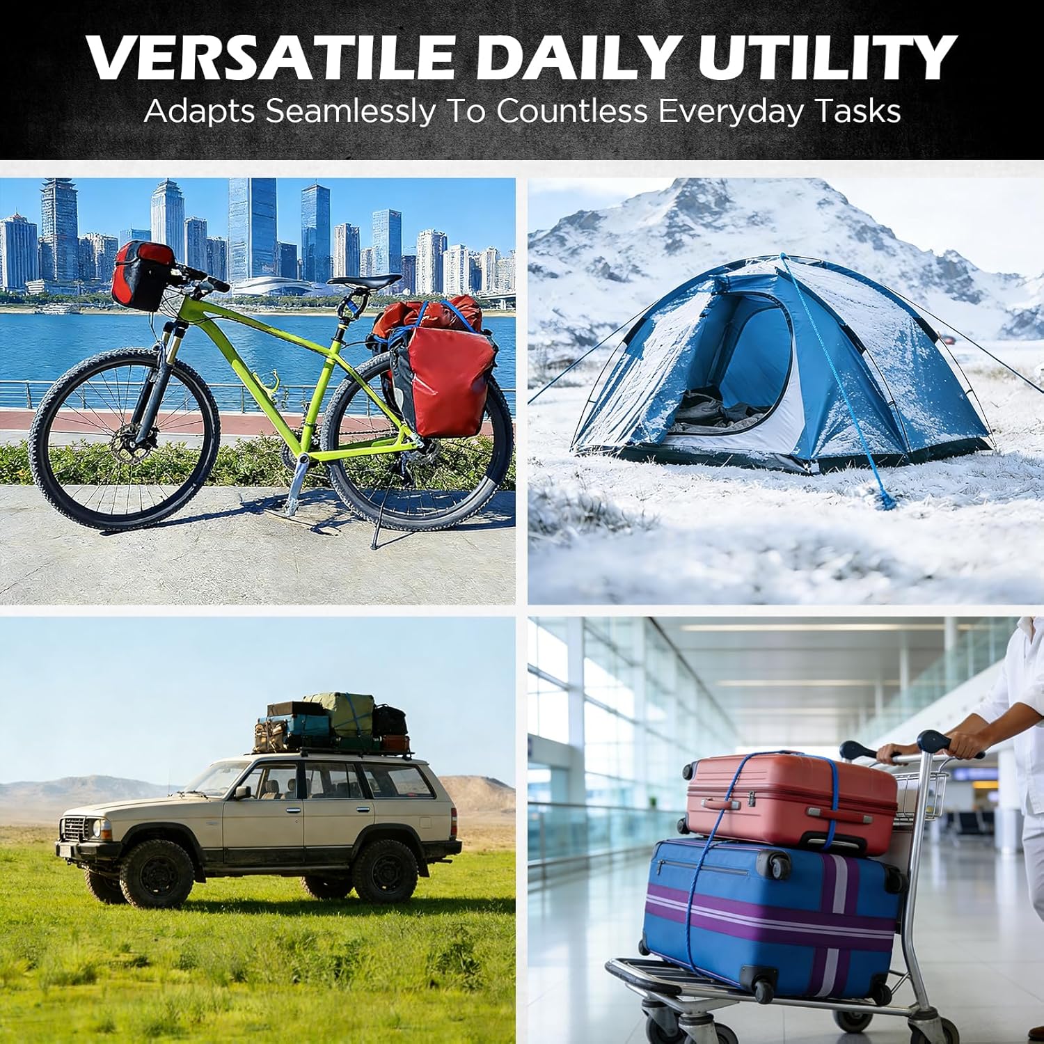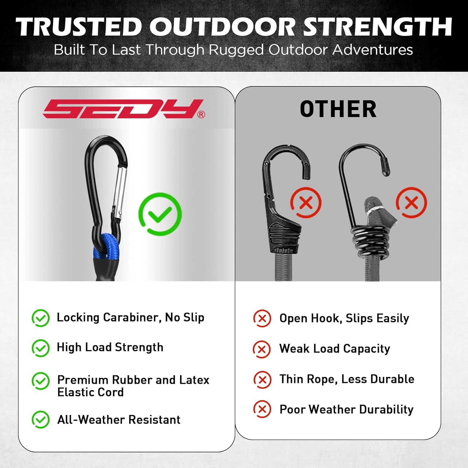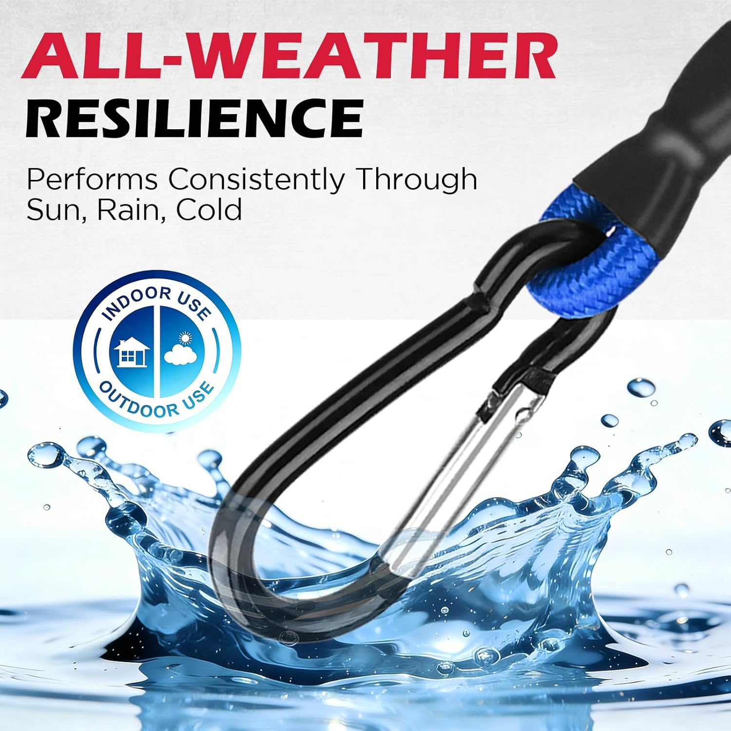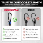 ALL-WEATHER – UV-resistant, high-temperature-resistant, and weatherproof design ensures dependable use in any climate, making these bungee cords perfect for tents, tarps, bikes, utility hauling, trailers, and everyday outdoor equipment organization