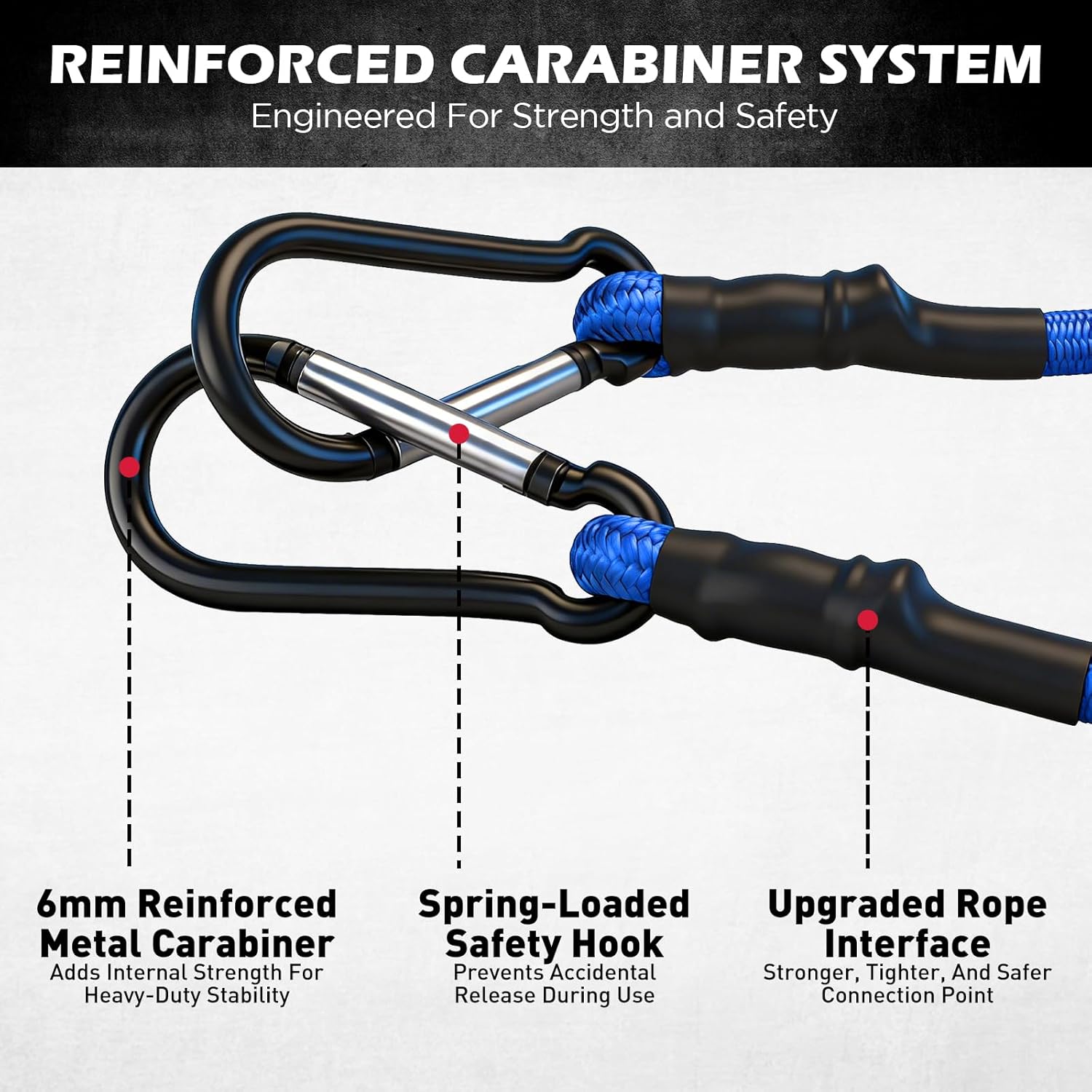 SECURE LOCKING – Each end features a steel carabiner clip with spring-loaded closure for safer attachment to truck beds, bike racks, tarps, small load strap points, preventing slips and keeping valuable equipment tightly fastened during transport