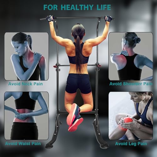 Adjustable Power Tower Pull Up Bar Dip Station, Free Standing Pull Up Rack Dip Station for Home Gym, 400LBS Capacity Height Heavy Duty Multi-Function Home Strength Training Fitness Workout Equipment