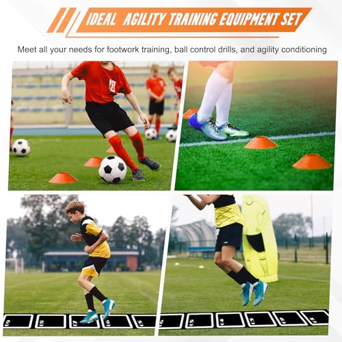 【All-in-One Agility Training Kit】: The agility ladder set comes with 10 soccer cones and a storage bag to create obstacle courses or marker systems. Elevate sports agility ladders workouts with interchangeable setups for dynamic exercise planning. Ideal for athletes, coaches, and fitness enthusiasts to boost agility, coordination, and speed across soccer, basketball, HIIT, and youth sports.