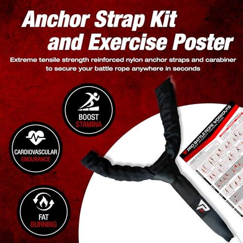QUICK TO SET UP, ANYWHERE – Maximize your training with more time actually working out and less time setting up and adjusting equipment. Use our extreme tensile strength reinforced nylon anchor straps and carabiner to secure your battle rope anywhere in seconds. Our non-slip strap design eliminates rope slip and prevents extra wear for better workouts.