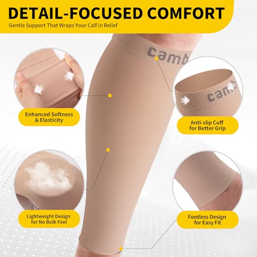 CAMBIVO Calf Compression Sleeve for Women & Men – 20-30mmHg Footless Compression Socks Support for Pain Relief, Varicose Vein