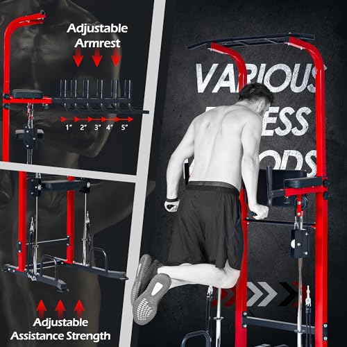 Dland Power Tower Dip Station Pull Up Bar Exercise Tower, Multifunctional Adjustable Height Training Equipment for Home Gym, Free Standing Assisted Fitness Workout Pullup Rack Station Machine