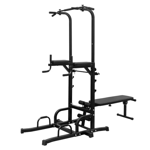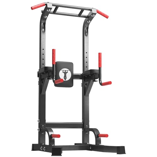 DlandHome Power Tower Pull Up Bar Station, Heavy Duty Adjustable Height for Home Gym Strength Training Equipment 330LBS Weight Capacity, Pull Up Dip Station