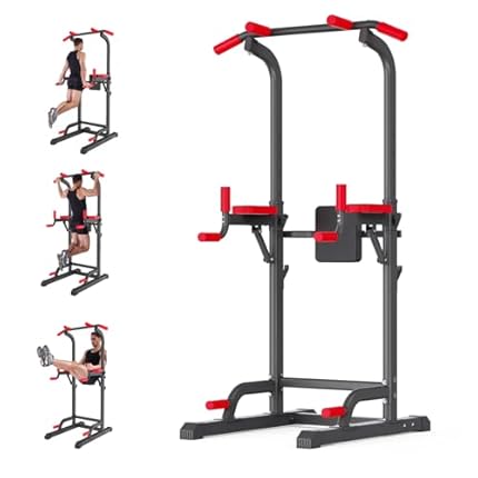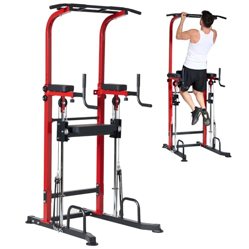 SogesPower Power Tower Dip Station Pull Up Bar for Home Gym Multi-Function Adjustable Height Strength Training Workout Equipment