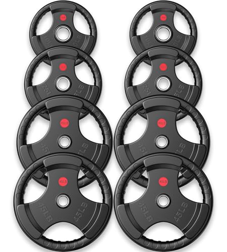 GIKPAL 2-inch Rubber Olympic Grip Weight Plates for Strength Training, Weightlifting in Home & Gym, Barbell Weights Plates Set (2.5/5/10/15/25/35/45 LB)