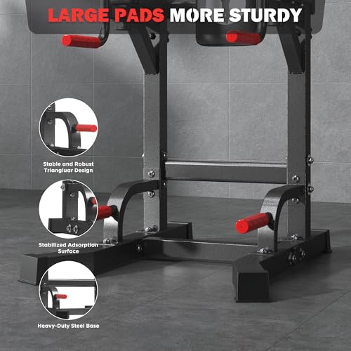 High Quality:Our Power Tower Dip Station is engineered for durability, featuring a robust steel frame that guarantees stability and extended use. The multi-gear height adjustment allows you to customize the station to your preferred workout level. Plus, the outer octagonal base comes with a rubber foot cover to protect your floors and enhance stability during your exercise routines.