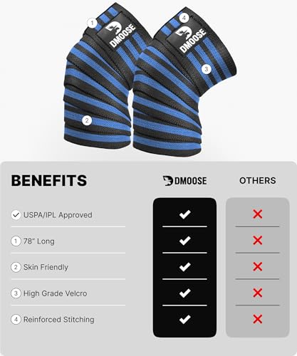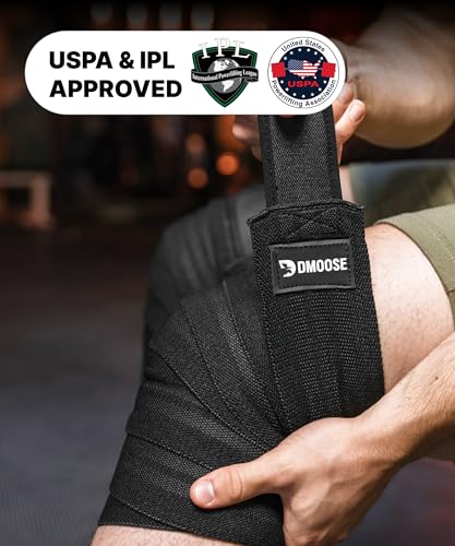 DMoose Fitness Knee Wraps for Weightlifting (Pair) – 78” Gym Brace Straps for Joint Stability & Pain Relief – Perfect for Squats & Working Out – USPA Approved Knee Wrap Supports for Men and Women