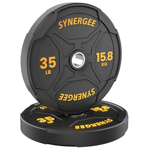 Synergee Bumper Plates – Durable Olympic Weight Plates, Low-Bounce Rubber for Strength Training, Powerlifting, and Functional Workouts.