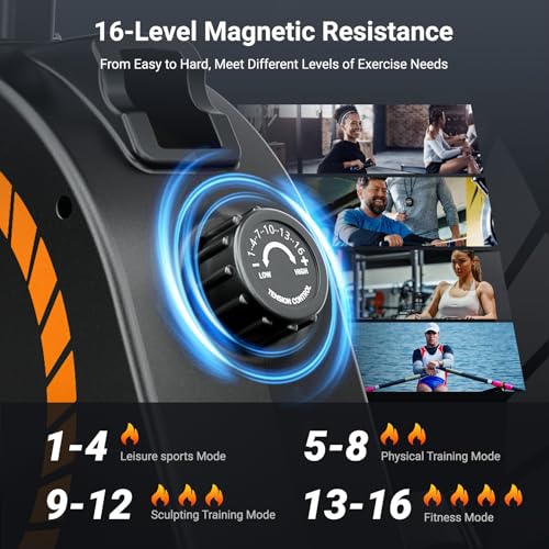 16-Level Magnetic Resistance: The rowing machine offers 16 levels of magnetic resistance that can accommodate all skill levels. Whether you are an experienced rower or a beginner, you can easily adjust the knob to tailor the difficulty and challenge yourself. It’s a great gift for fitness enthusiasts and families