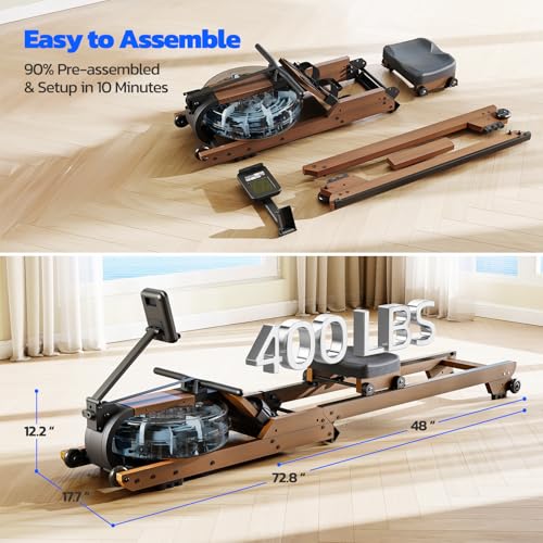 Dripex Water Rowing Machines for Home Use, Foldable Row Machine with 400LBS Weight Capacity, Rower Machine with Dedicated LCD Monitor, Comfortable Seat, Bluetooth App Compatible for Home Gym Exercise