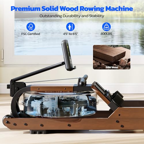 FSC-Certified Oak Wood Construction: Crafted from FSC-certified premium solid oak, this water rowing machine not only enhances the aesthetic appeal of your home gym but also ensures unmatched durability and stability, supporting up to 400LBS weight capacity. Designed for users up to 6’5” tall, this rower offers an immersive rowing experience that blends seamlessly into any modern living space