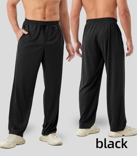 DWUGD’L 3Pack Men’s Lightweight Sweatpants with Pockets Open Bottom Athletic Pants for Workout,Jogging,Gym,Running,Training