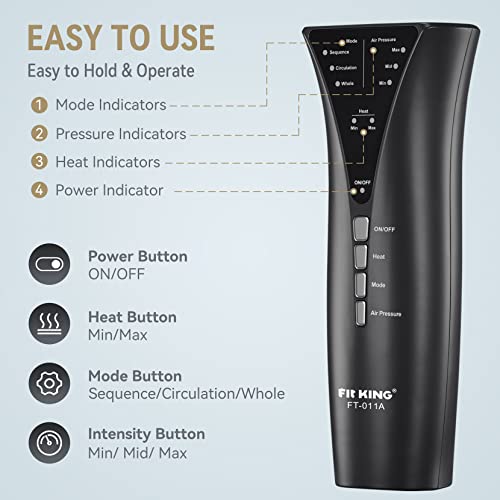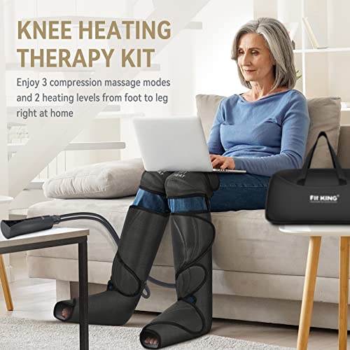 FIT KING Foot and Leg Compression Massager for Circulation and Pain Relief with Knee Heating Therapy – Handheld Controller 3 Modes 3 Intensities – Gift for Mom Wife Family