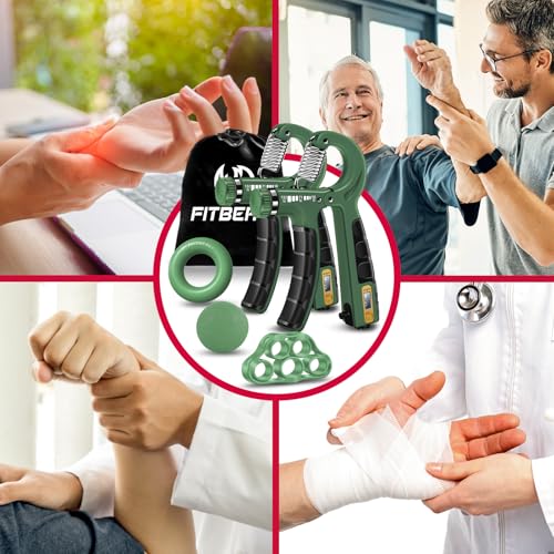 FitBeast Hand Grip Strengthener Workout Kit (5 Pack), 2 Forearm Grip Adjustable Resistance Hand Gripper, Finger Stretcher, Grip Ring & Stress Relief Grip Ball for Athletes