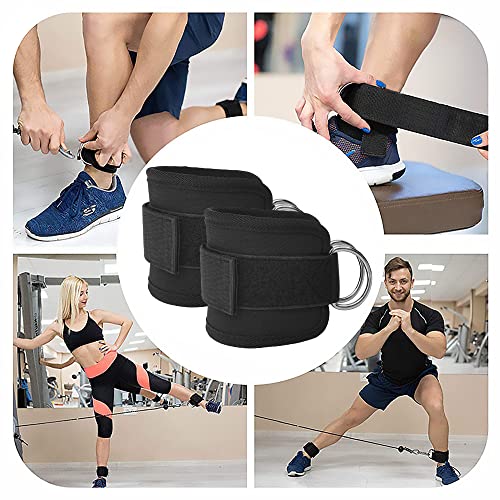Fitness Ankle Straps for Cable Machines, 2 Pack Comfortable Adjustable Padded Ankle Wrist Cuffs, Kickback Glute Workouts for Men Women, D-Ring Leg Straps with Neoprene Padding