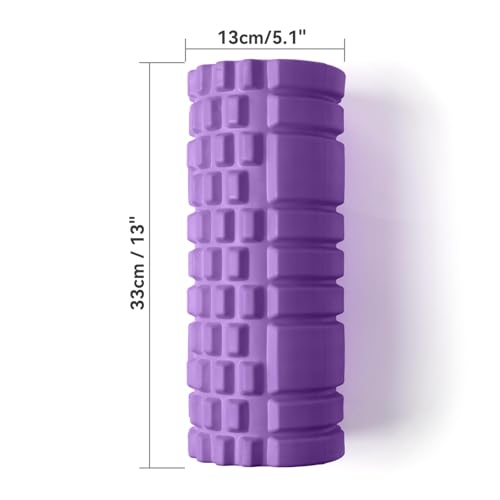 Foam Roller for Muscle Massager, Patented 13″ High Density Exercise Roller for Muscle and Myofascial Trigger Point Release, Yoga, Back Roller for Fitness, Yoga (Purple)
