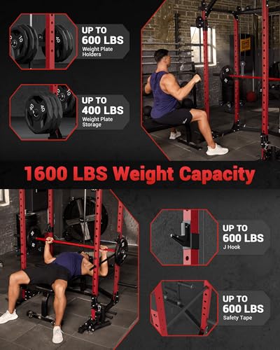 GarveeLife Power Cage, Multi-Functional Power Racks for Home Gym with Cable Crossover System, 1600 LBS Weight Capacity Fitness Squat Rack for Strength Workout with More Training Attachment