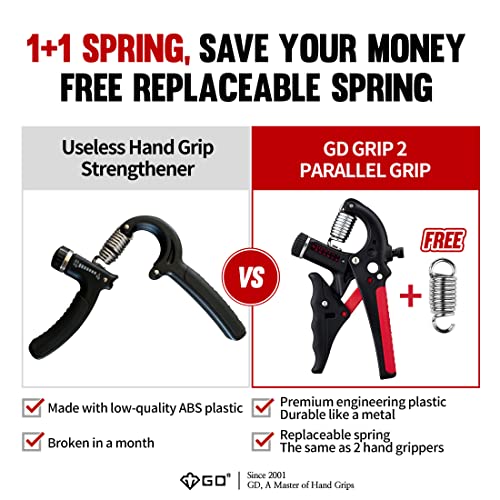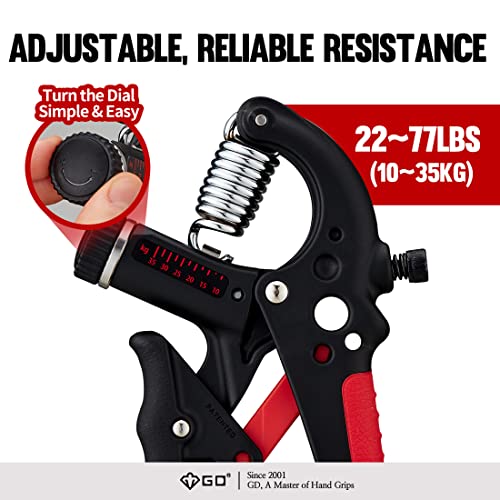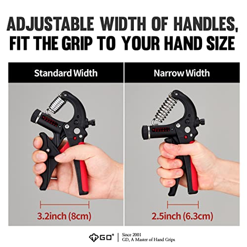 GD Grip2 Hand Grip Strengthener (Grip Strength Trainer) Adjustable Gripper (22~77lbs) Forearm and Wrist Exerciser Strengthener for grip Strength