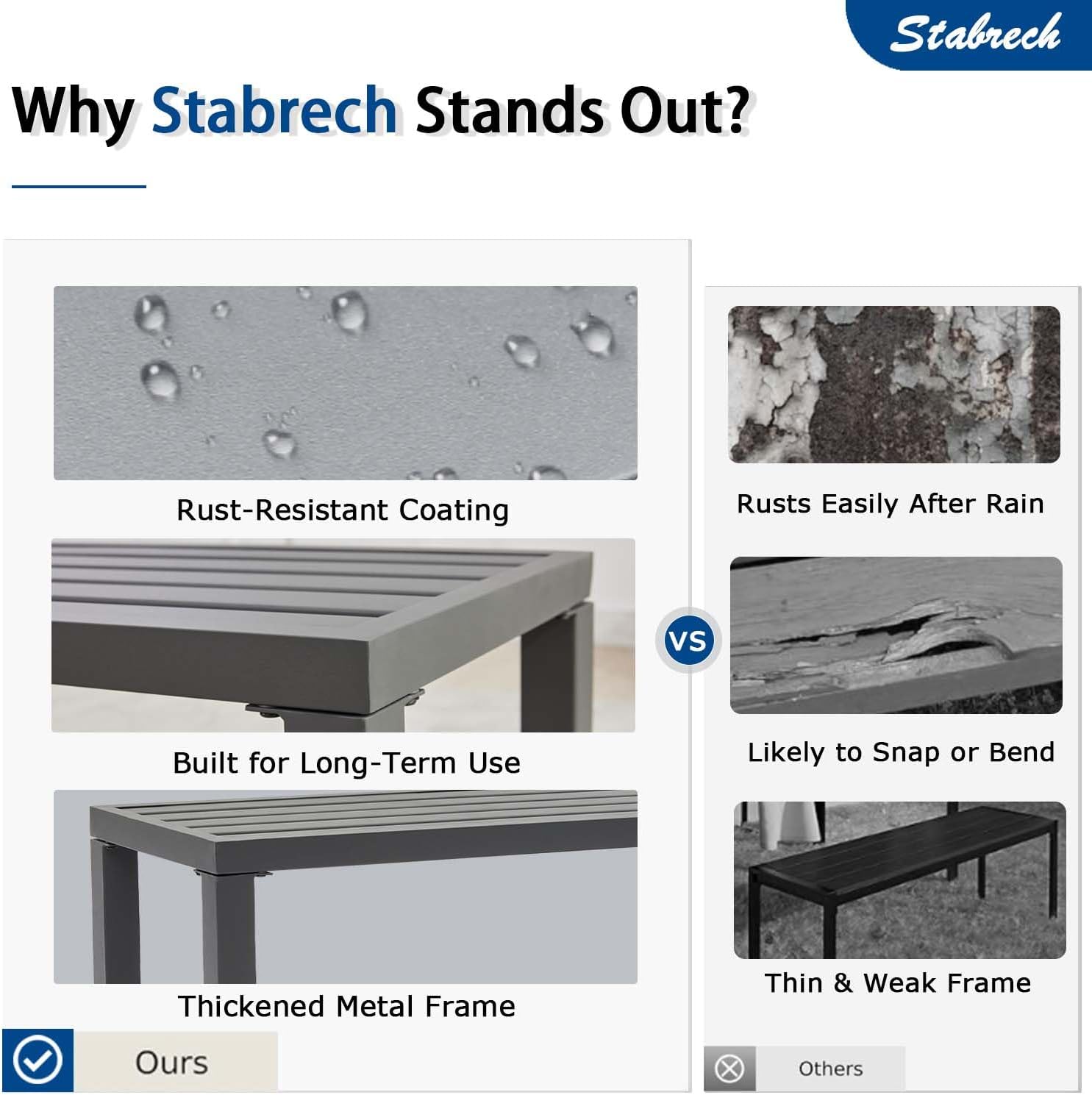 【Low Maintenance】 Simple to clean—just wipe with water to keep its sleek look. No need for frequent care, unlike wooden benches that often break or warp over time