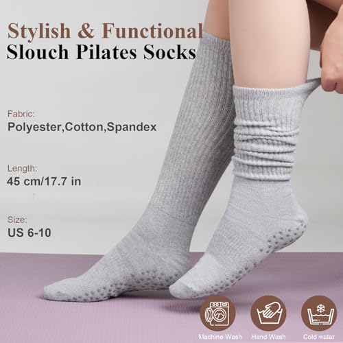 Grip Pilates Socks for Women, Yoga Slouch Socks with Grip for Barre Workout Hospital Long Scrunch Slipper Socks