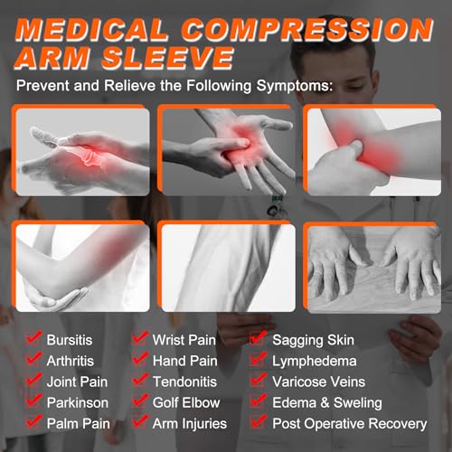 𝗣𝗥𝗘𝗩𝗘𝗡𝗧 & 𝗥𝗘𝗟𝗜𝗘𝗩𝗘: Hiball whole arm medical compression sleeve can effectively reduce lactic acid build-up in arm, promote blood circulation, increase the oxygen supply to the arm, and thereby help relieve & prevent tendonitis, lipedema, parkinson, nerve damage, arm injury & stroke, rheumatoid, neuropathy, swelling, osteoporosis, varicose vein, thrombus, dvt, muscle stiffness, joint pain, cellulitis, fibromyalgia, sagging skin & flabby, burn, lymphatic swelling after mastectomy.