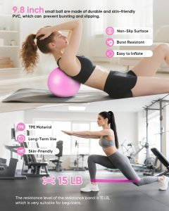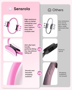 【Durable & Comfortable】This pilates ring uses high-grade fiberglass wrapped in a thick rubber shell for excellent resistance and durability. Its foam handles are non-slip for added comfort. The pilates ball is made from thick pvc to ensure stability during use. The resistance bands come in three resistance levels, feature a flat, wide design to reduce muscle pressure, and have anti-slip surfaces for safety.