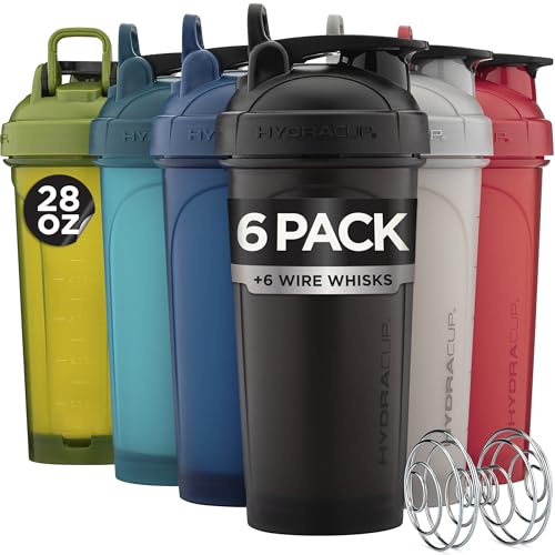 Hydra Cup – 6 Pack – 28oz Shaker Bottles | Protein Shaker Cups with Whisk Ball, Leak-Proof, Carry Handle | BPA-Free Gym Mixer for Protein Powder, Mixing Supplements