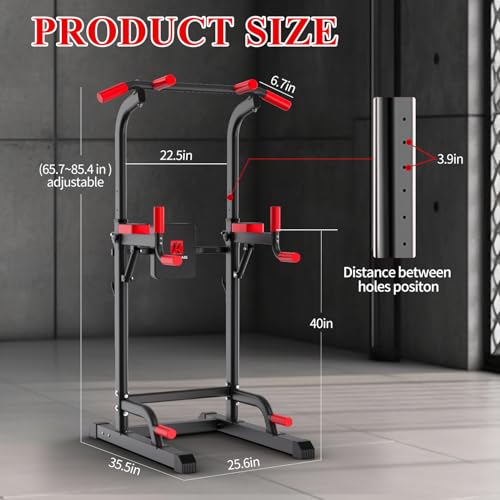 【Size & Guareented】Product Dimension: 29.1″ x 40.9″ x 68.8-90.5″.This power tower will not take up too much space.