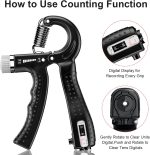 【Smart Counting Grip Strengthener】 Add counting function, our hand strengthener could record your exercise number every time when you use it. So you can know better your training progress and training results with counting numbers. Just Press the button firmly to count automatically. Gently rotate button to clear units digital, push and rotate button to clear tens digitals.