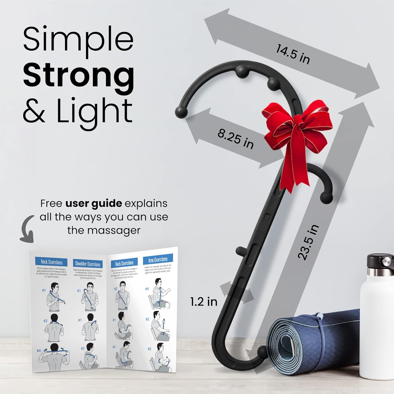 Ideal Size Massage Tools -Less than a pound. Anything over a pound can easily fatigue the arms and hands diminishing the accuracy and pressure applied to the affected muscle group and impeding recovery and healing, When used consistently. Also, the awkward handle shape and positioning on many popular massagers can make it difficult to operate for those with limited range in mobility. Our massage stick design addresses those issues.