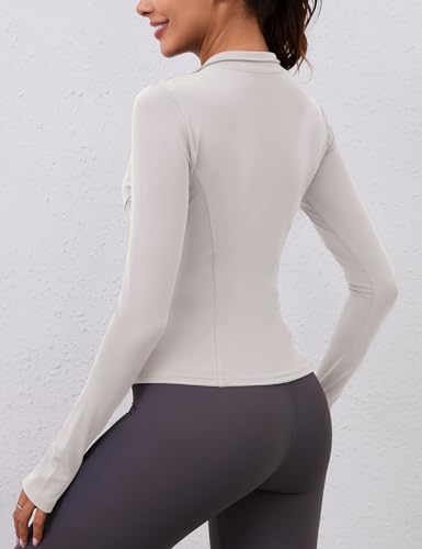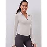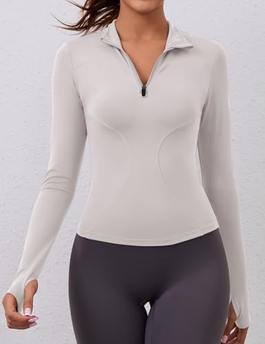 LOMON Womens Long Sleeve Workout Tops Quick Dry Quarter Zip Pullover Crop Yoga Athletic Slim Fit Shirts