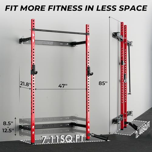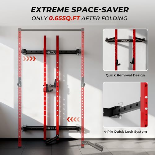 Mikolo 2″ x 2″ Folding Wall Mounted Squat Rack, 1000 Pounds Capacity Power Rack with Pull Up Bar, J Hooks, Landmine and Other Attachments, Space-Saving Home Gym