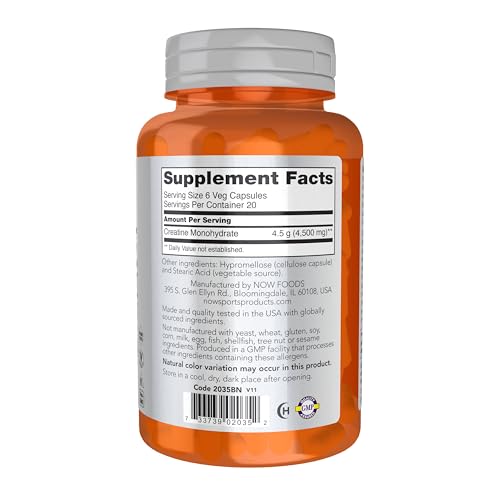 NOW Foods Sports Nutrition, Creatine Monohydrate 750 mg, Mass Building*/Energy Production*, 120 Veg Capsules