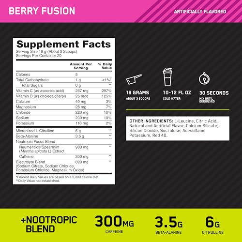 BETA-ALANINE AND CITRULLINE – 3.5g of Beta-Alanine for enhanced endurance to train harder for longer & 6g of Citrulline for an intense pump
