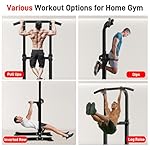 【Multi-functional】The pull-up station is ideal for home gyms. This strength station integrates multiple exercise functions, including pull-ups, push-ups, parallel bar dips, inverted rows, vertical knee raises, and handstands. It effectively targets your triceps, chest, shoulders, and back muscles, delivering a comprehensive upper-body strength workout. Suitable for all fitness and strength training levels, it empowers you to customize your exercise routine.