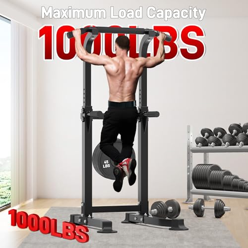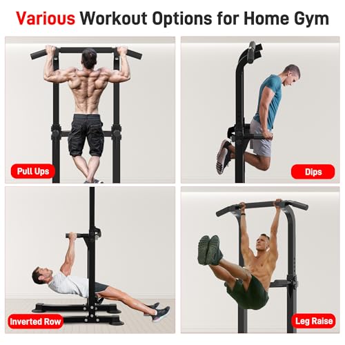 Outdoor Basic Power Tower, Pull Up Bar and Dip Station for Home Gym, 1600LBS Weight Capacity, Adjustable Height, Heavy Duty Steel Frame for Calisthenics, Strength Training Fitness Equipment