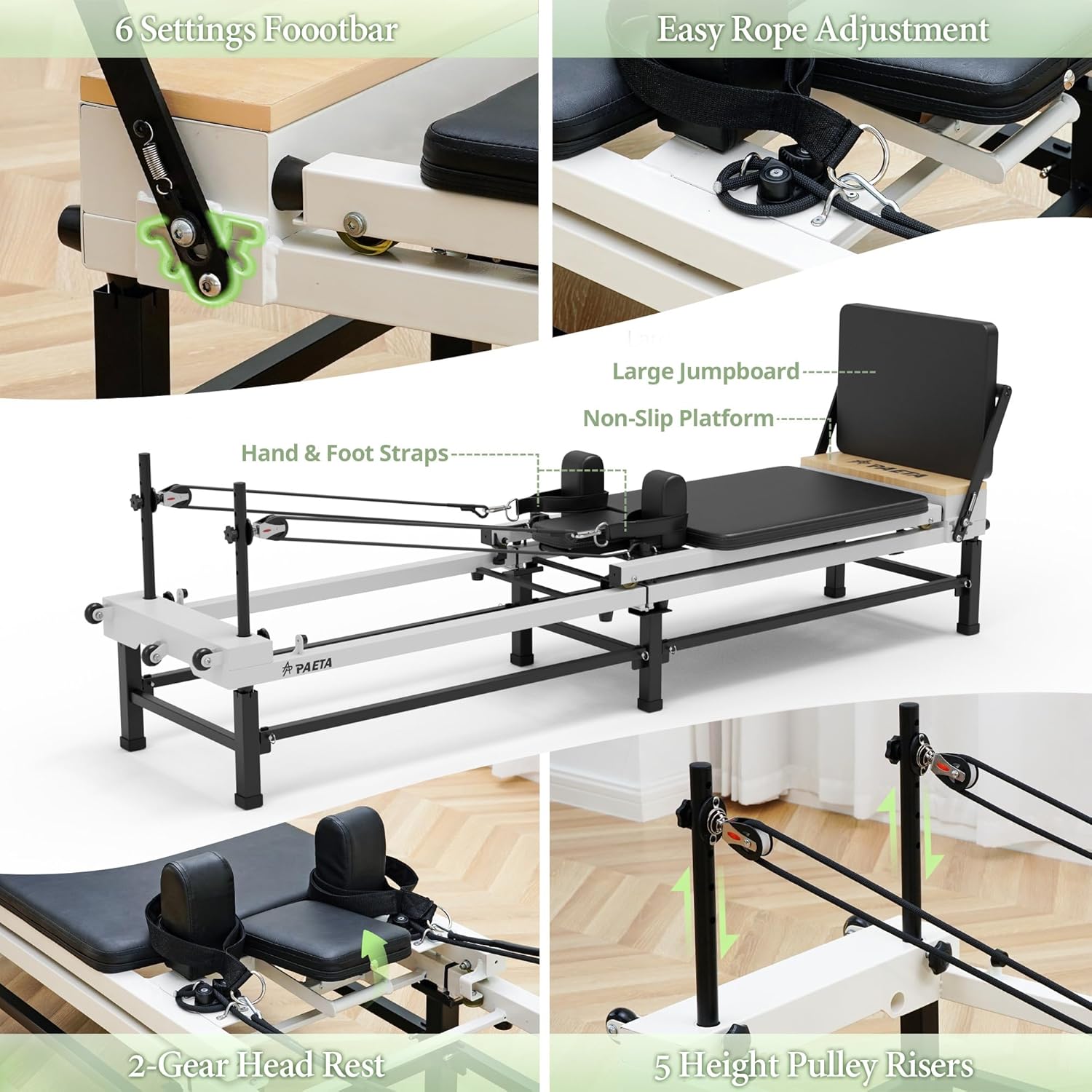 PAETA Pilates Reformer, 91″ Foldable Reformer Pilates Machine with Adjustable Reformer Heights, Pilates Equipment with Piano Wire Spings and Jump Boards
