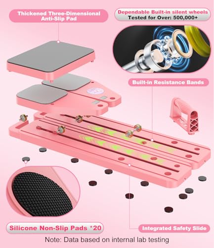 Plilates Reformer Set is made of high-quality polypropylene (PP) material, with a maximum load capacity of 500 lb. Compared to ordinary fragile plastic materials, our Pilates board material is more wear-resistant, has better anti-oxidation performance, and has a longer service life. It is equipped with 20 Top-notch silicone anti-slip pads. can provide better safety and stability for high-intensity Pilates training. The High precision silent bearing (<35 db) can withstand up to 500,000+ cycles